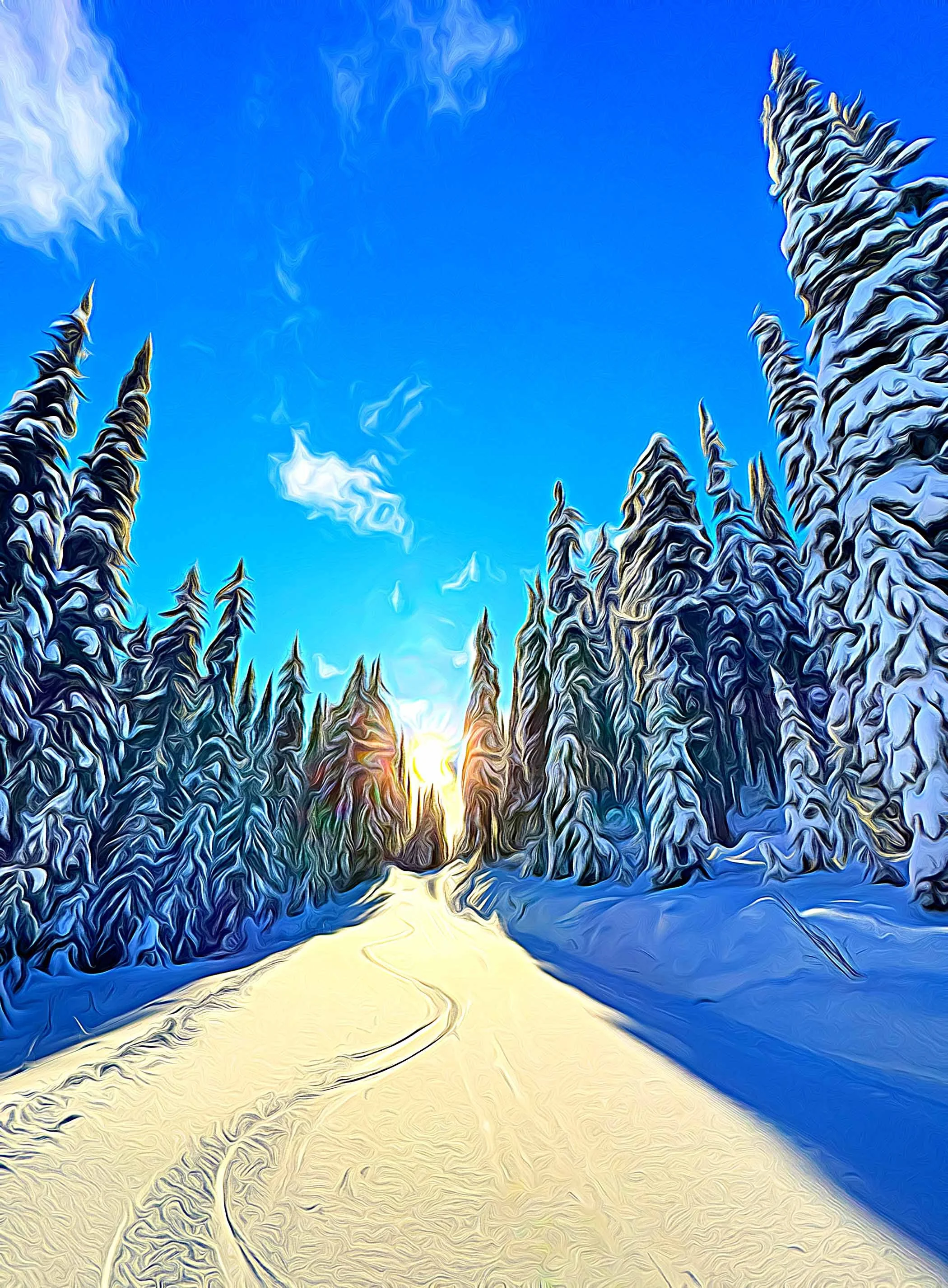 “From The Light” - A moment captured when I paused on the trail and turned back toward the sun, letting its glow spill across the snow behind me. The trees stood tall and still, wrapped in winter’s quiet, while the light painted everything in gold for just a moment.
